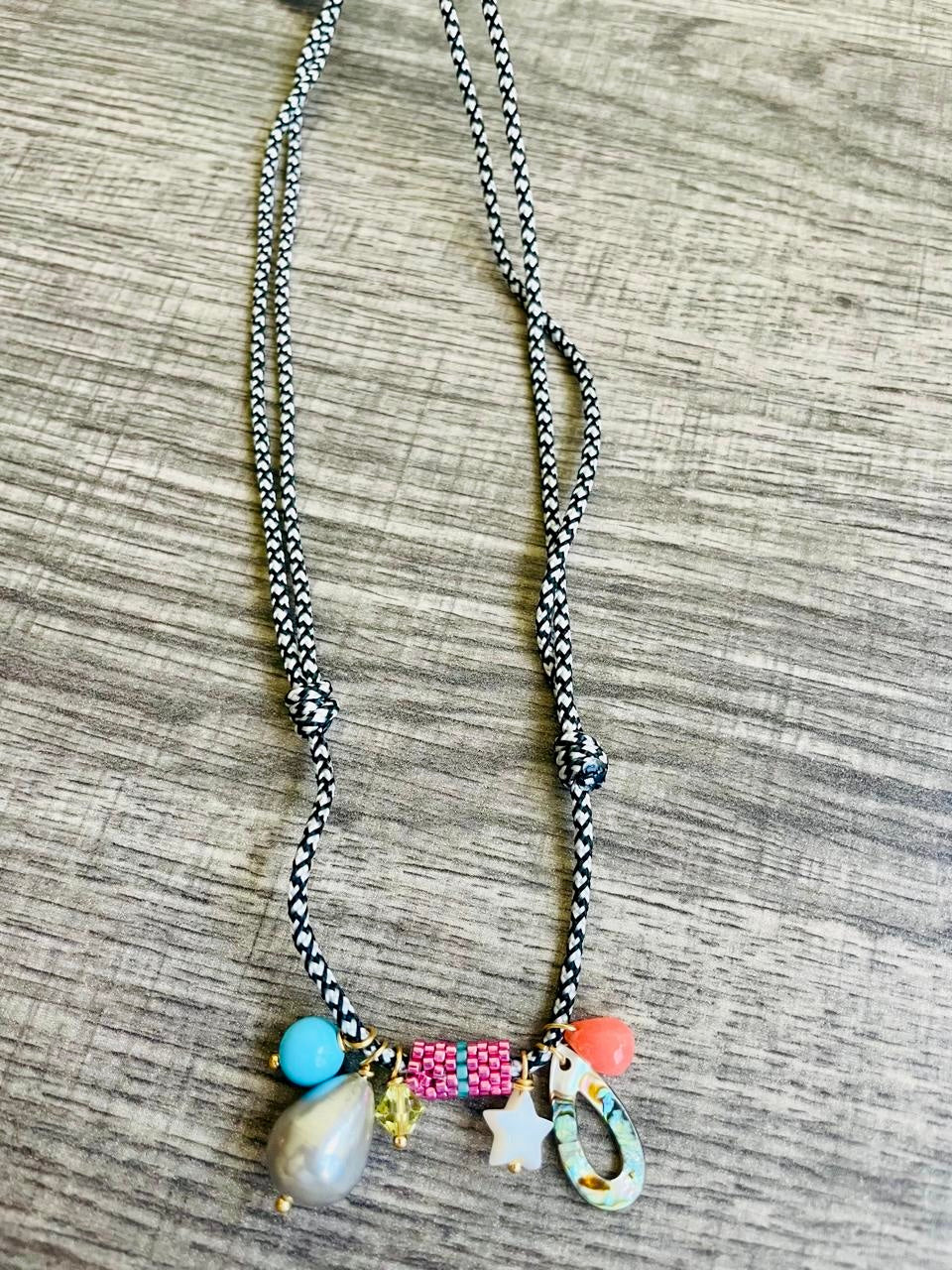 Collar doble hilo y charms tejidos a mano